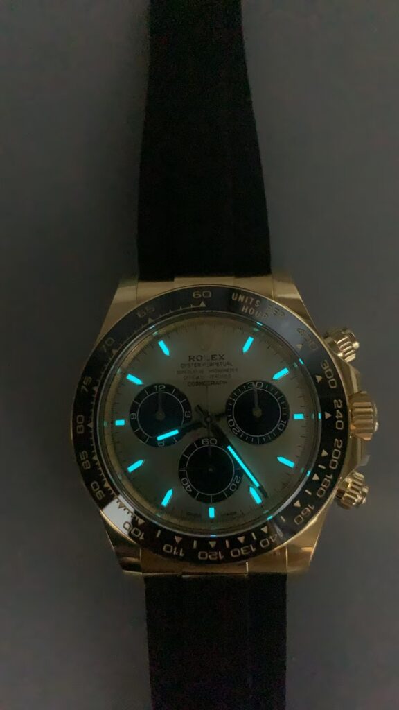 Once on the wrist, the AR Factory Daytona delivers an experience that’s almost indistinguishable from the authentic Rolex. The tactile sensation of the winding crown, the crisp click of the pushers, and the subtle reflection of gold under daylight — all of these details contribute to a genuine luxury experience. The watch feels solid but not overbearing, refined yet commanding.